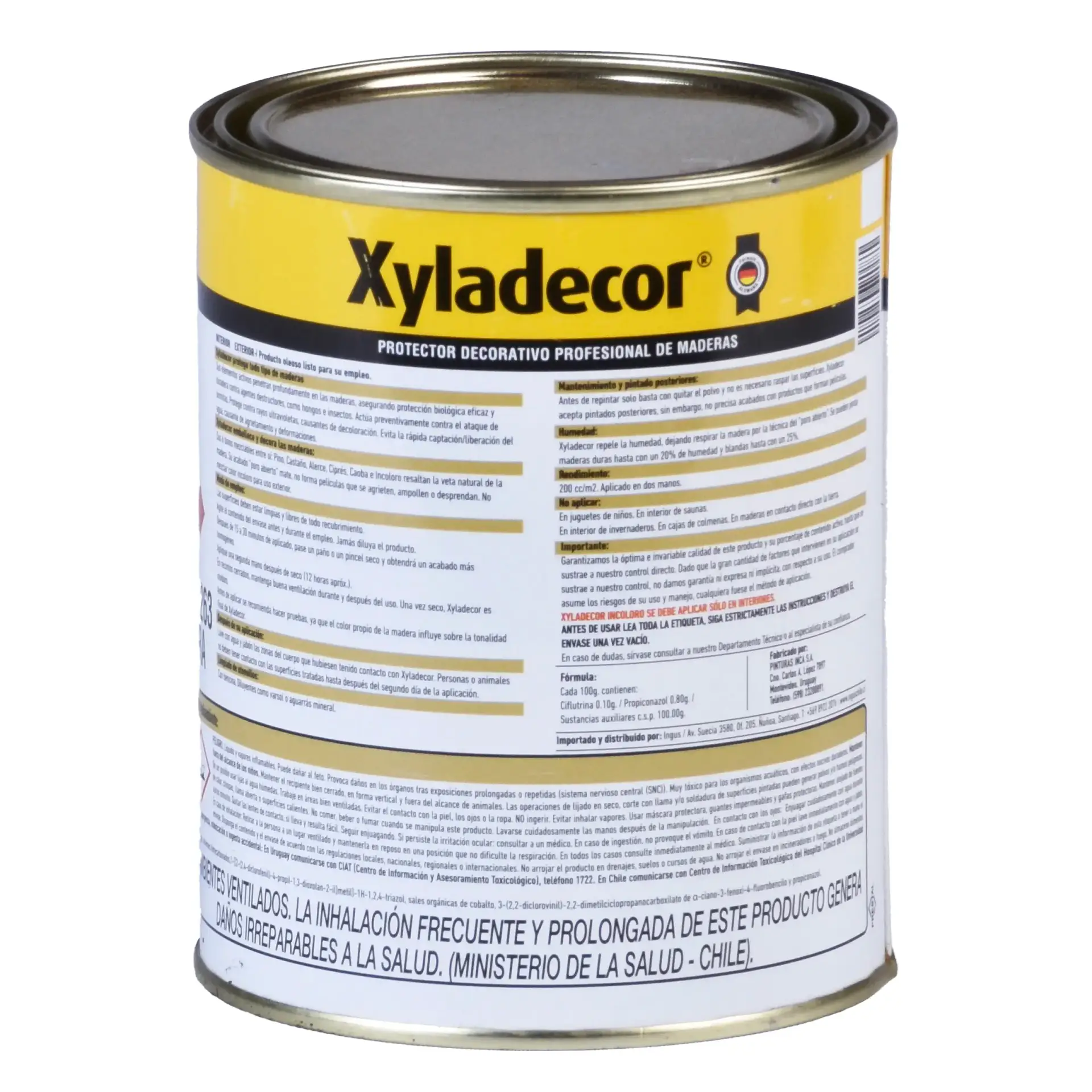 Base solvente, alta protección contra filtro UV y humedad, fungicida (protección contra hongos u otros), no se diluye, no requiere lijado para mantención, no se descascara ni se craquéela, ideal aplicación con brocha, disponibilidad para 120 colores a elección.